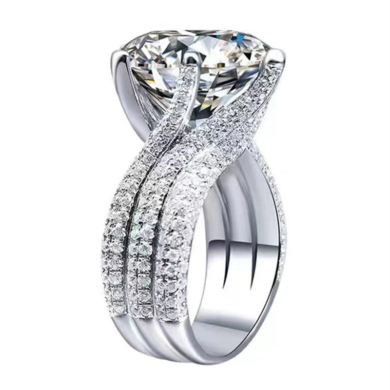 La bague Six-Claw Luxury séduit par son design raffiné : une pierre centrale sublimée par six griffes, accompagnée de trois rangées scintillantes qui captent chaque rayon de lumière.